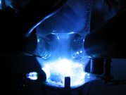cm. Auffällig sind die nach rechts geneigten, sehr bauchigen Anodenarme und die ebenfalls bauchigen Anodenstutzen. Der Zündmagnet sitzt oberhalb der Elektrode und zieht diese bei der Zündung aus dem